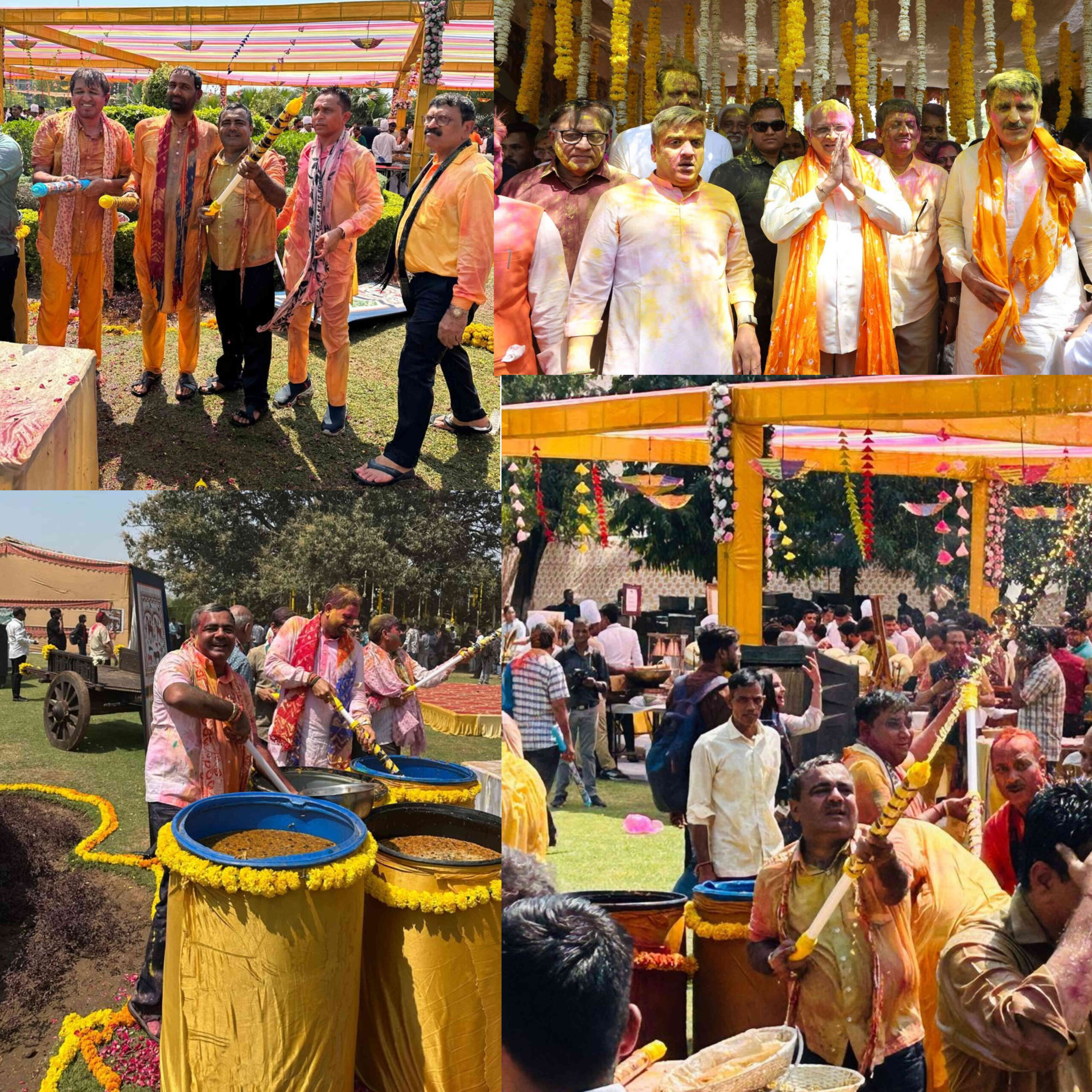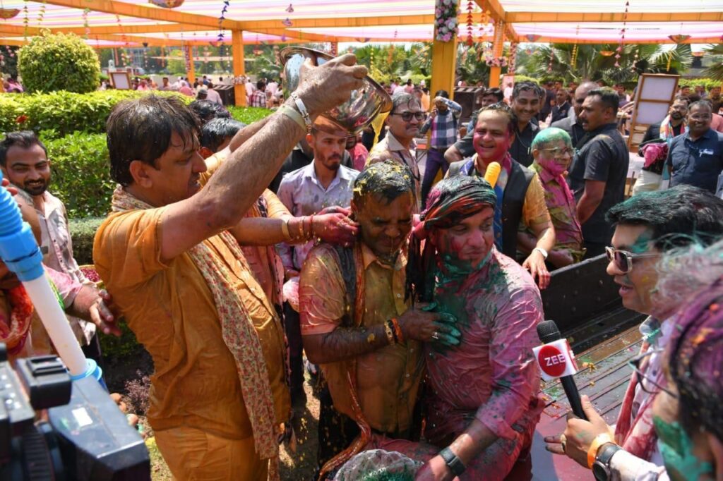 પરિસર રંગબેરંગી ગુલાલ અને પાણીના ફુવારાઓથી ભરાઈ ગયું હતું, અને સૌ કોઈએ એકબીજાને રંગો લગાવીને શુભેચ્છાઓ પાઠવી હતી.આ પ્રસંગે મુખ્યમંત્રી ભૂપેન્દ્ર પટેલે જણાવ્યું હતું કે હોળી-ધૂળેટીનો તહેવાર એ એકતા અને ભાઈચારાનું પ્રતિક છે. તેમણે સૌને શુભેચ્છાઓ પાઠવી અને આ તહેવારને શાંતિ અને સૌહાર્દપૂર્ણ રીતે ઉજવવાનું આહ્વાન કર્યું હતું. વિધાનસભાના અધ્યક્ષ શંકર ચૌધરીએ પણ આ પ્રસંગે પોતાના વિચારો વ્યક્ત કર્યા હતા અને સૌને હોળી-ધૂળેટીની શુભકામનાઓ આપી હતી.
