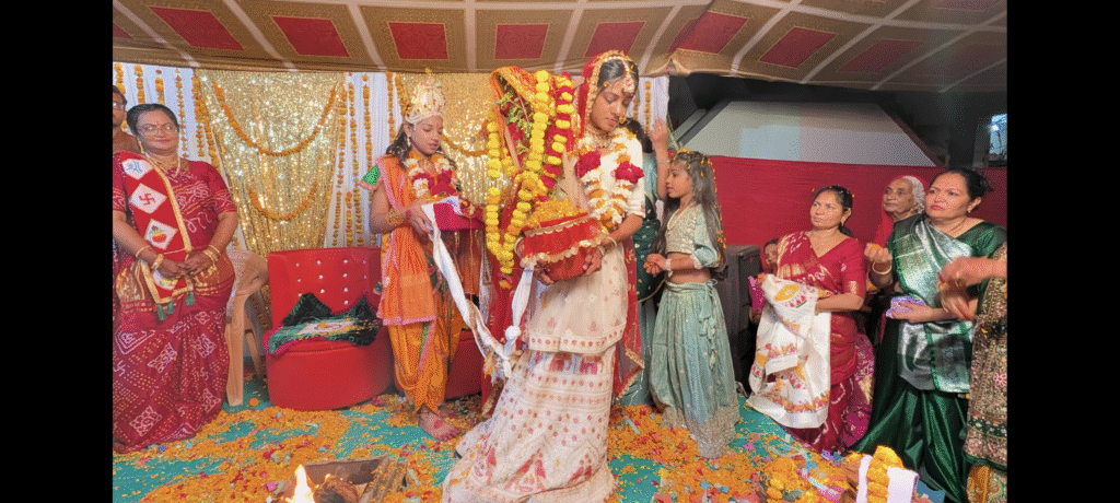 જામનગર:દેવદિવાળી એટલે કે દેવઉઠી એકાદશીના પરમ પવિત્ર દિવસે, ‘છોટી કાશી’ તરીકે વિખ્યાત જામનગર શહેર ભક્તિરસમાં તરબોળ થયું હતું. ગત રવિવારે, કારતક સુદ એકાદશીના શુભ અવસરે, શહેરના ગોકુલ નગર વિસ્તારમાં આવેલ કૈલાશ નગરમાં વસતા બે મનોરથી પટેલ પરિવાર દ્વારા ‘તુલસી વિવાહ’ના ભવ્ય અને માંગલિક પ્રસંગનું આયોજન કરવામાં આવ્યું હતું.