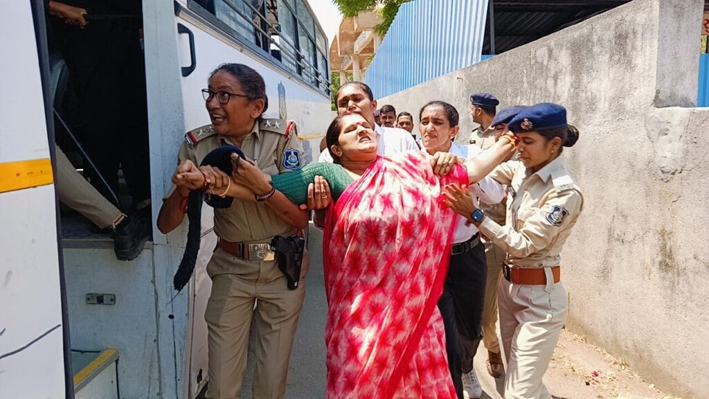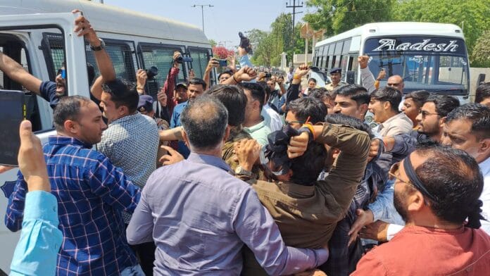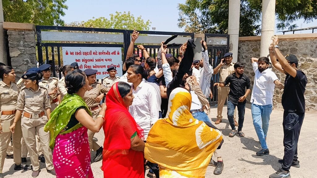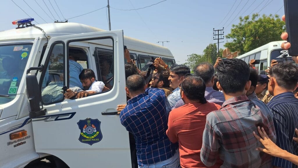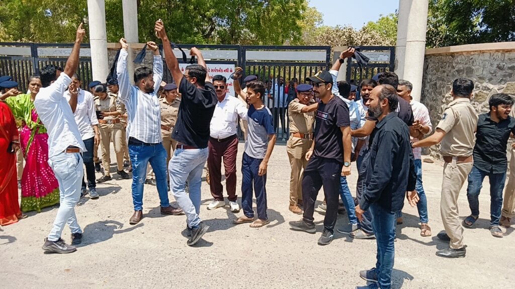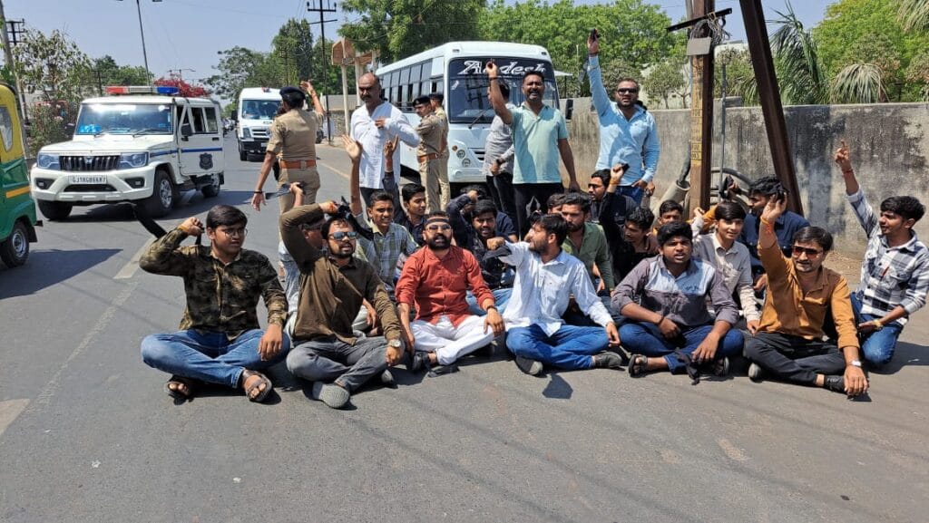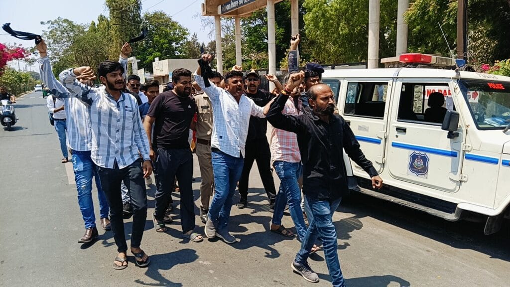 જામનગર તા ૧૨, જામનગર શહેરમાં ગુજરાત પ્રદેશ અધ્યક્ષ સી. આર. પાટીલ ના યોજાયેલા બુથ સંમેલનના કાર્યક્રમના મુખ્ય ગેઇટ પાસે ક્ષત્રિય અગ્રણીઓ દ્વારા વિરોધ પ્રદર્શન કર્યું હતું, અને કાળા વાવટા ફરકાવ્યા હતા.ક્ષત્રિય યુવાઓ કાર્યક્રમના સ્થળની અંદર પહોંચે તે પહેલા પોલીસ દ્વારા તમામની અટકાયત કરી લેવામાં આવી હતી. કેટલાક કાર્યકર્તાઓએ રૂપાલા ની ટિકિટ રદ કરો, રૂપાલા હાય હાય ના નારા સાથે ઓસવાળ સેન્ટરના મેઇન રોડ પરના મુખ્ય દ્વાર પાસે માર્ગ પર બેસી ગયા હતા, તે તમામની પોલીસ દ્વારા અટકાયત કરી લેવામાં આવી છે, અને પોલીસ હેડ ક્વાર્ટરમાં લઈ જવાયા છે.